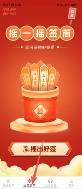3. 摇一摇签筒就能摇出好签,签文内容丰富,覆盖多场景,兼顾实用性与趣味性。并且操作门槛低,界面简洁,各类用户均可快速上手,还有24小时在线客服及时解决问题。