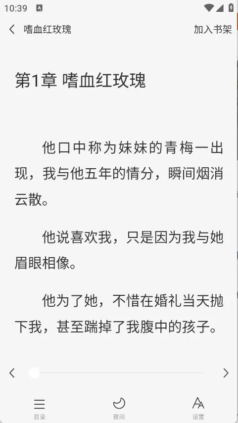 3、阅读体验超流畅,章节加载速度快,偶尔的广告也不干扰主要阅读。还支持沉浸式阅读,界面简洁排版舒适,可自由选择章节。