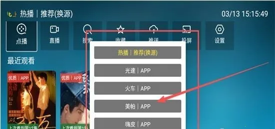 3、选择需要更换的播放源,点击即可快速切换