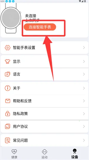 1、在设备页面点击按钮,跳转到手表搜索界面。