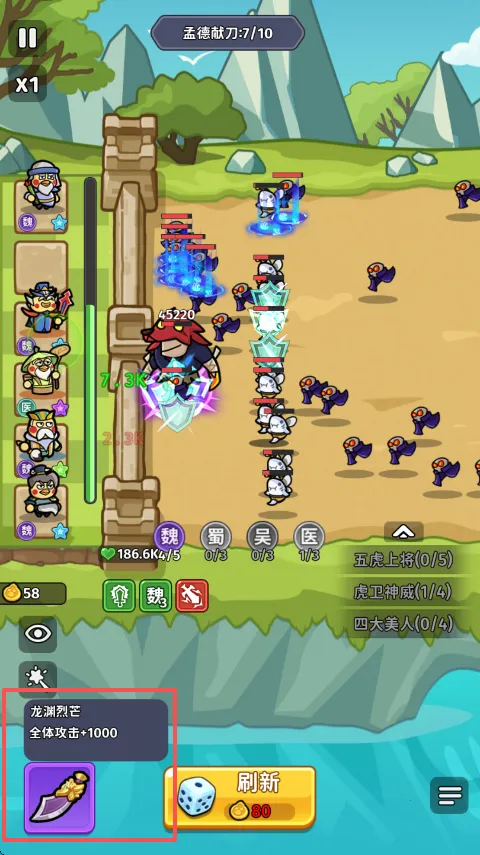 4. 强力羁绊效果:集齐特定武将可激活羁绊,大幅提升队伍战斗力,如集齐刘备麾下关赵张马黄激活五虎上将羁绊。