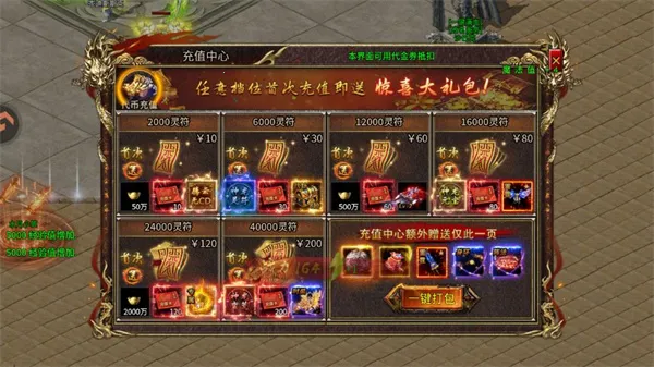 4、元宝、蛮荒币、灵符为本服货币结构,不分价值,都很重要。红包、代金券作为本服高级货币体系,能给冒险者带来巨大的货币收益。