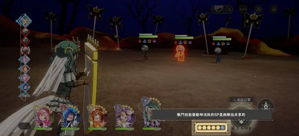 4、当角色sp点满后可释放战斗技能,对敌人造成大量伤害;